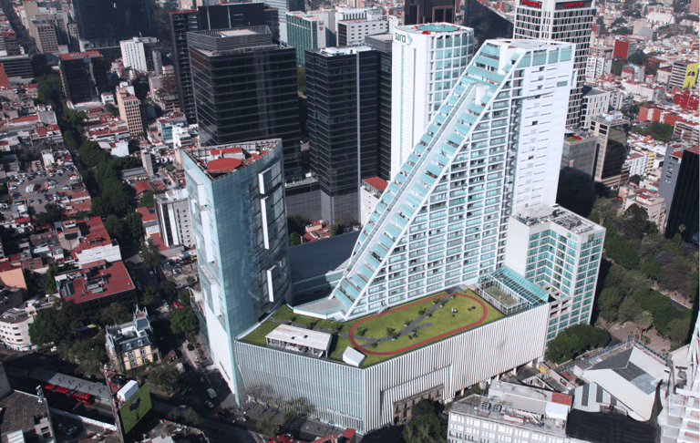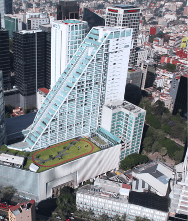 Es un edificio de usos mixtos diseñado por el Arq. Teododo González de León, cuenta con 5 sótanos para estacionamiento, 3 niveles de Centro Comercial, 1 Torre de departamentos y 1 Torre de oficinas. cuenta con un área total construida de 82,880 m2.