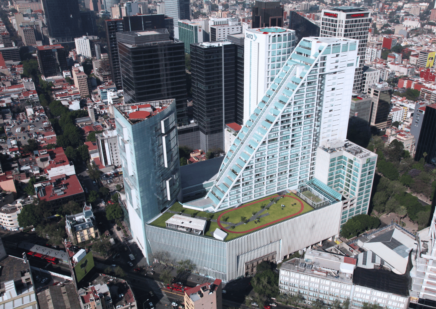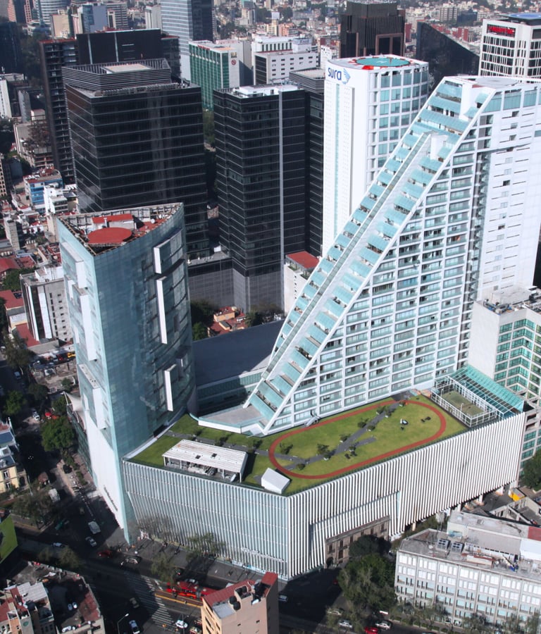 Es un edificio de usos mixtos diseñado por el Arq. Teododo González de León, cuenta con 5 sótanos para estacionamiento, 3 niveles de Centro Comercial, 1 Torre de departamentos y 1 Torre de oficinas. cuenta con un área total construida de 82,880 m2.
